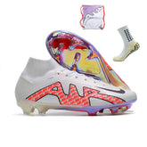 Incline instantaneamente o campo com o design arrojado do Superfly 9 Elite. Adicionamos uma unidade Zoom Air, feita especificamente para o futebol, e textura aderente na parte superior para um toque excepcional, para que você possa dominar nos minutos finais de uma partida - quando mais importa. É leve e rente ao chão, então você sentirá que está flutuando pelas pontas da grama enquanto corre de uma zona para outra.