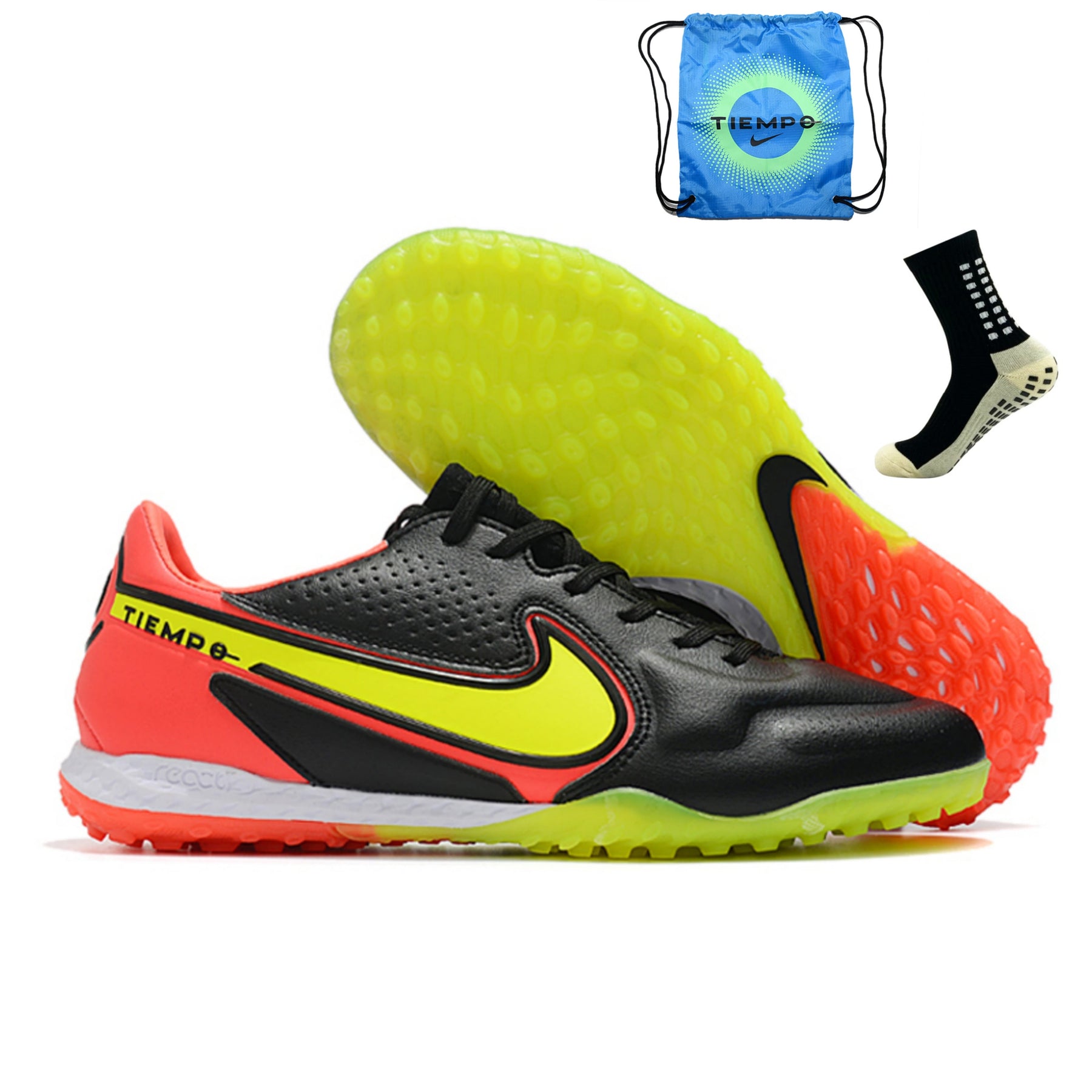 A sola de borracha foi adaptada para fornecer tração multidirecional em gramados ou superfícies de grama - grama, com base na análise do Nike Sports Research Lab dos movimentos do jogador.
